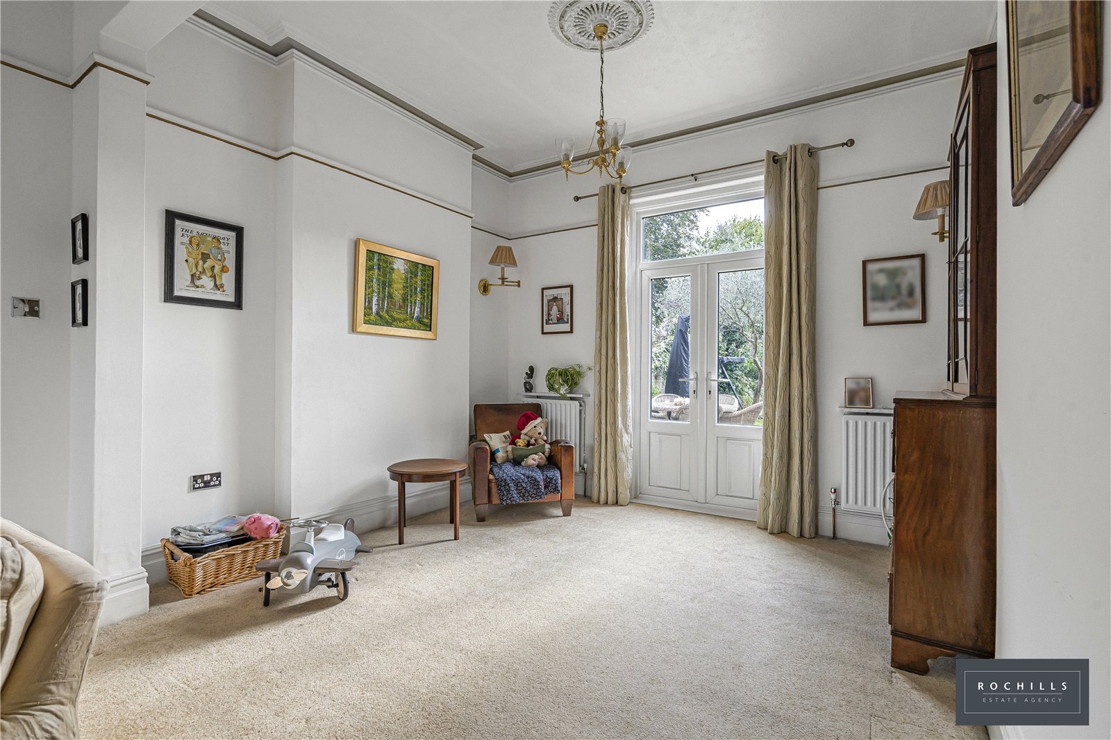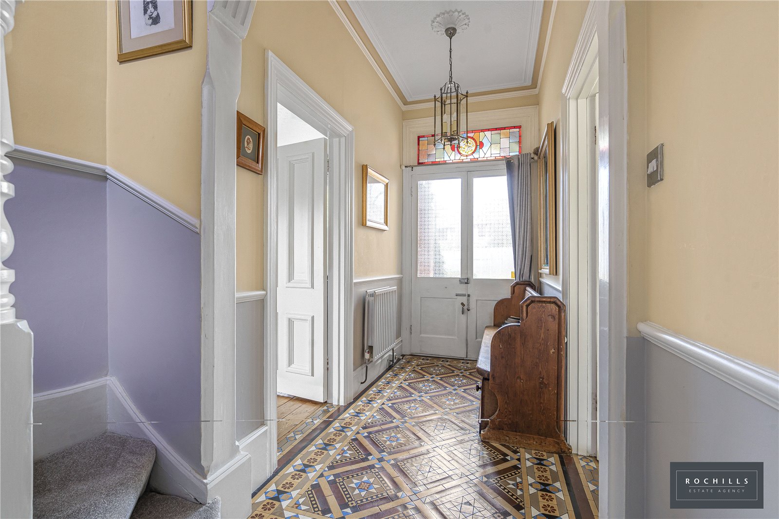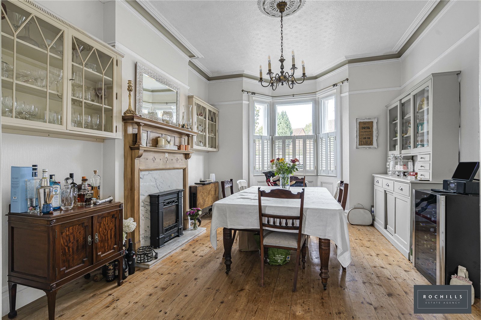 Upon entering, you’re greeted by a wide entrance hall and characterful period features that add warmth and personality to the home. To the left of the hallway sits the first double reception room with a feature marble fire place, while on the opposite side you’ll find the open-plan kitchen and dining area, complete with a utility room. Towards the rear, there is a shower room with WC, followed by a welcoming family room with double doors opening onto the Victorian walled garden.