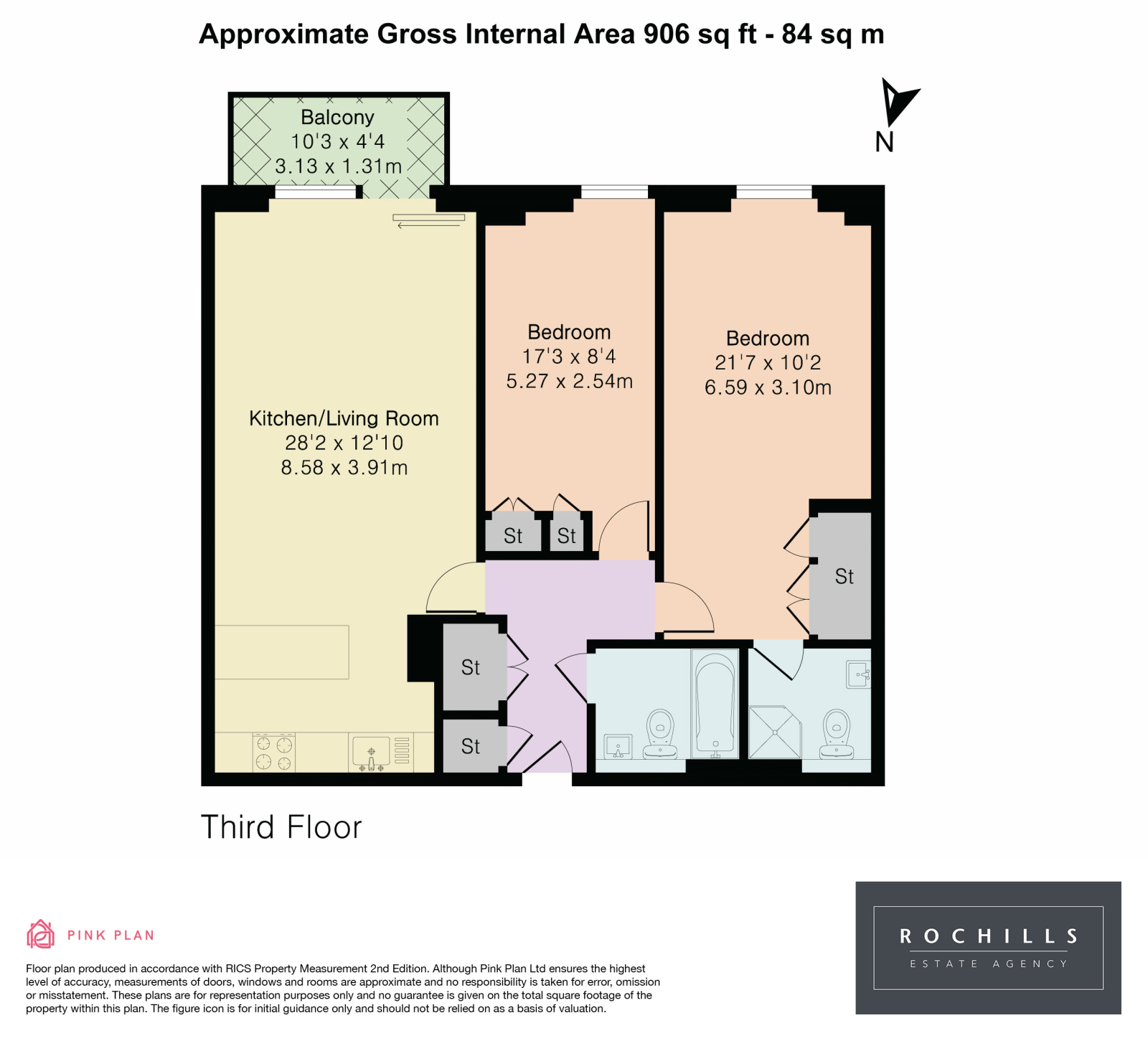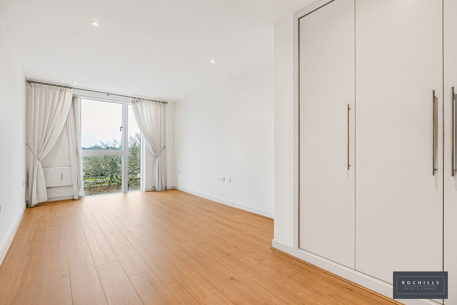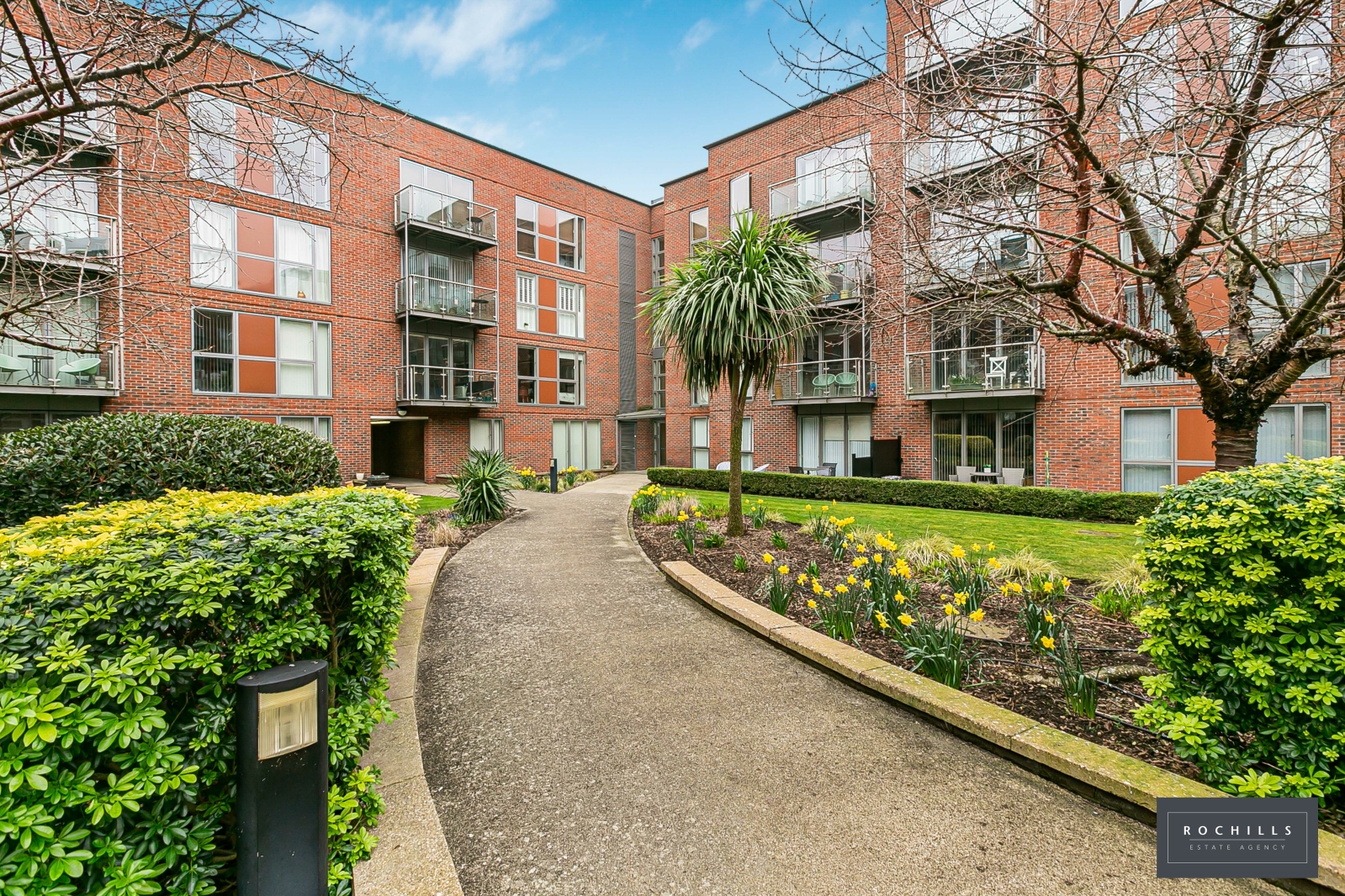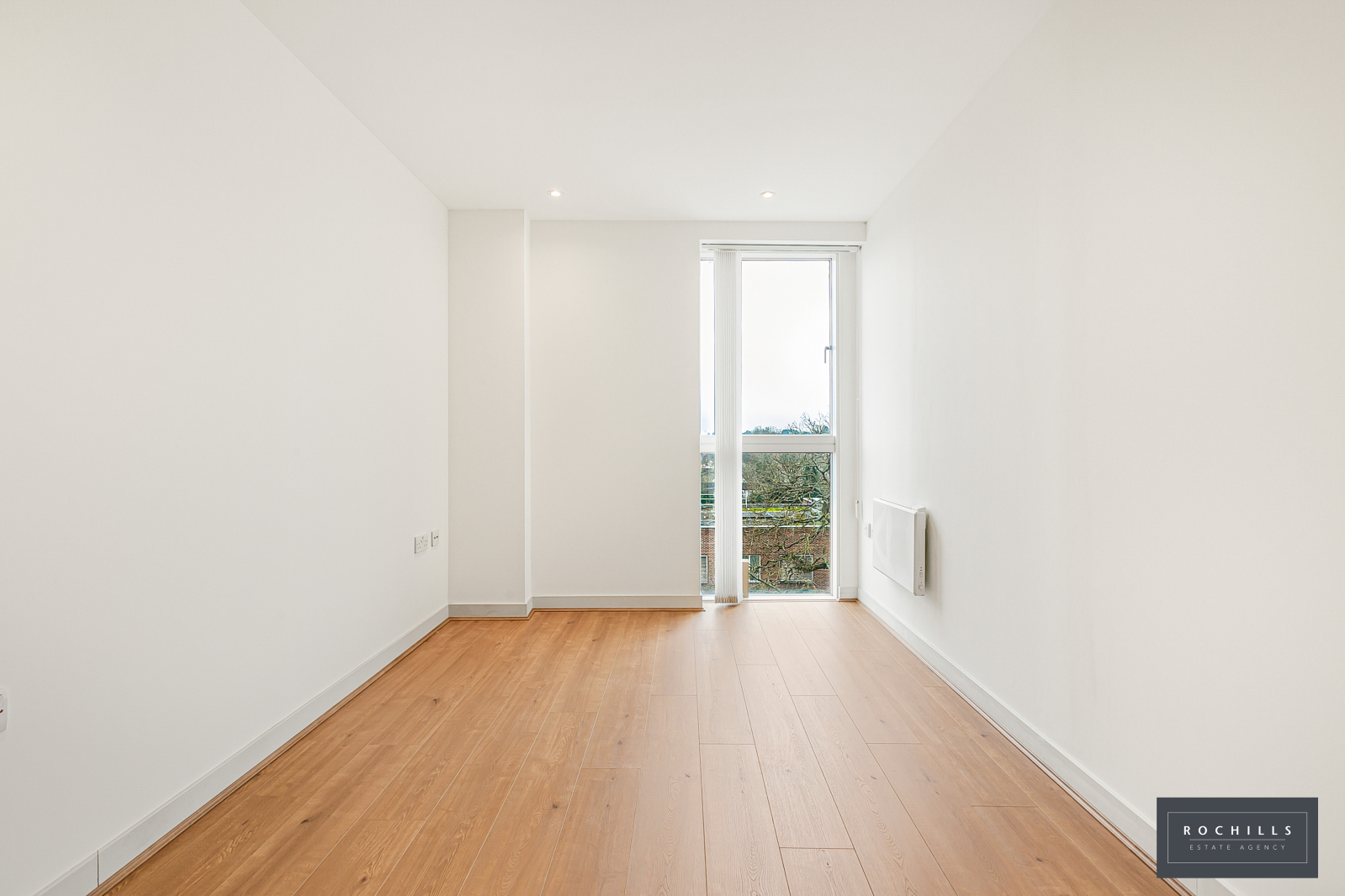 The apartment is contemporary with a front aspect living room with open plan kitchen. The living room has patio doors opening to the private balcony, whilst the kitchen area features base and eye cupboards and matching drawers, incorporating various integrated appliances.