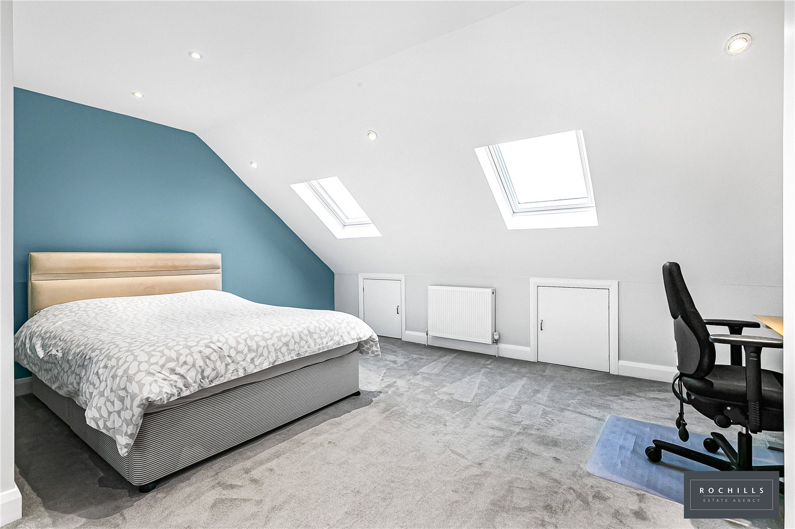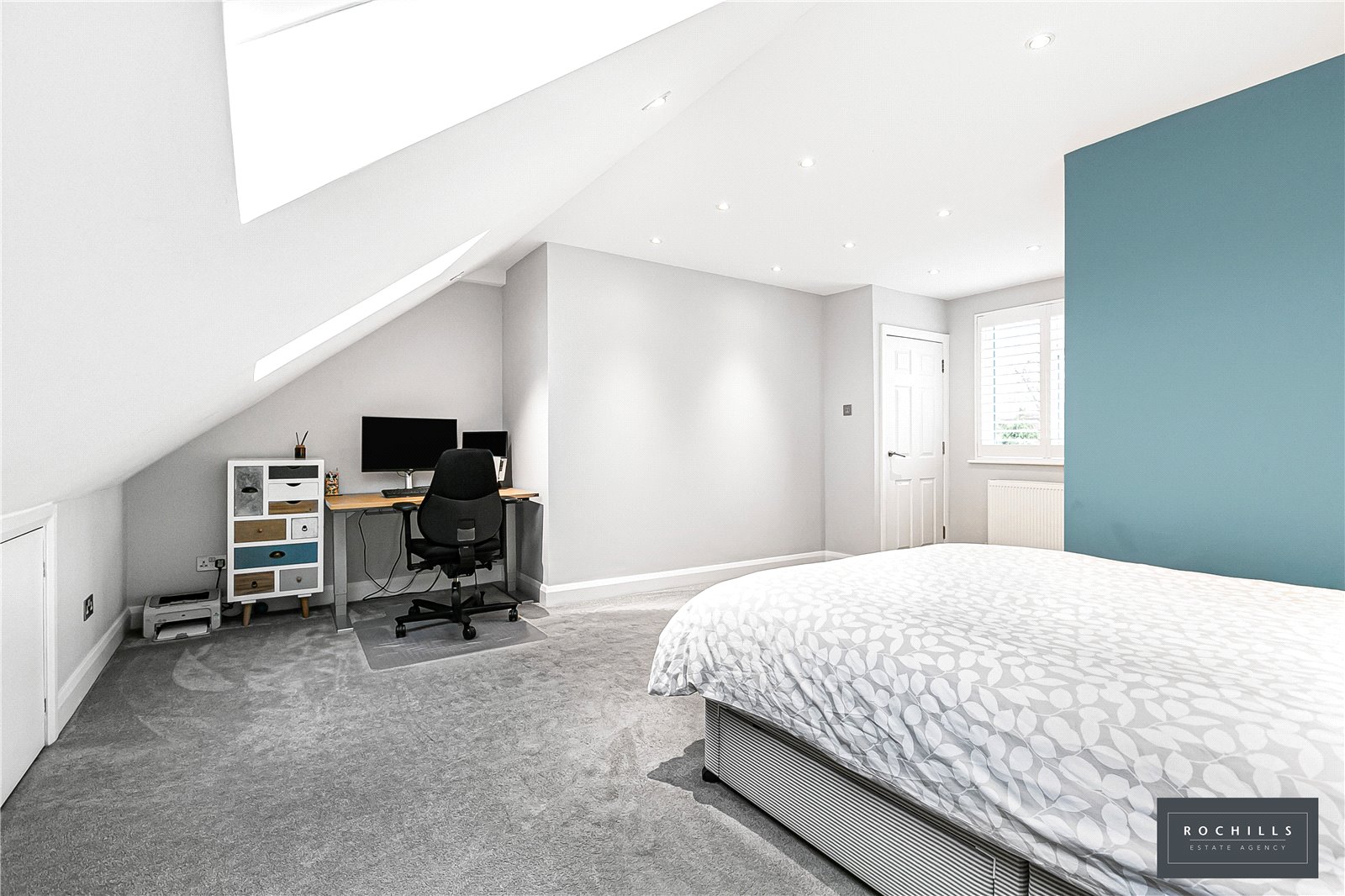 The top floor is dedicated to the impressive principal bedroom suite. Generously sized and full of character, it offers ample eaves storage and a luxurious en suite shower room, creating a peaceful and private retreat.