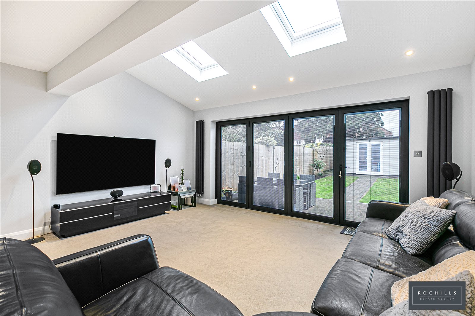 The heart of the home is the breathtaking rear living room, a superb space with a part-vaulted ceiling, Velux window and wide bi-folding doors opening directly onto the rear garden. Flooded with natural light, this impressive room offers the perfect setting for both everyday family life and relaxed entertaining.