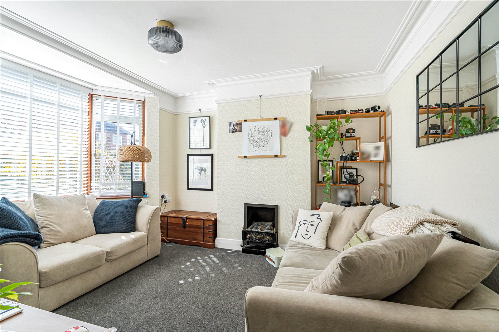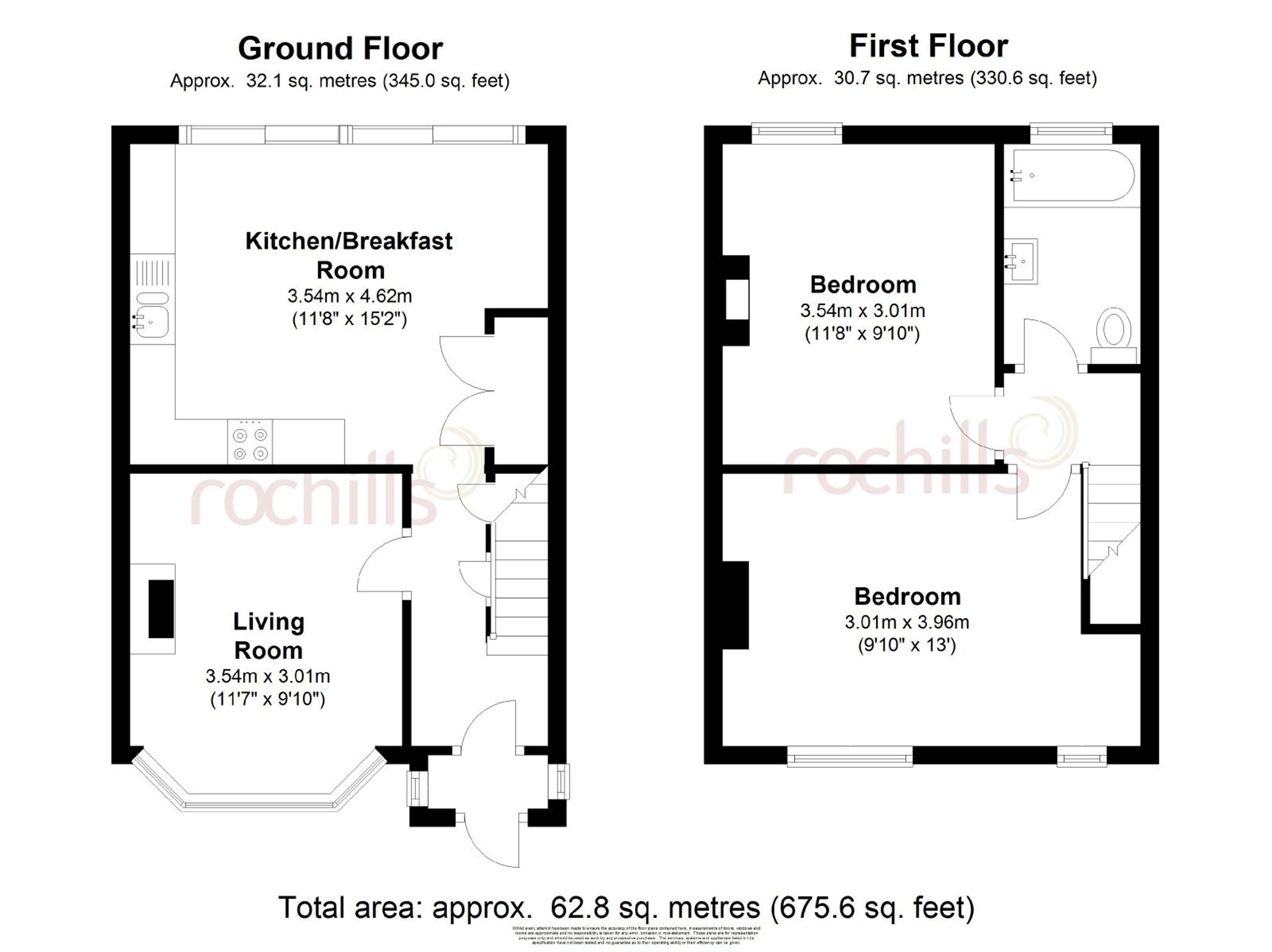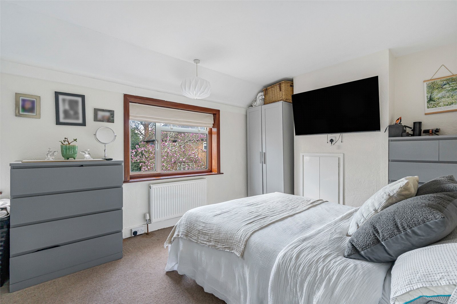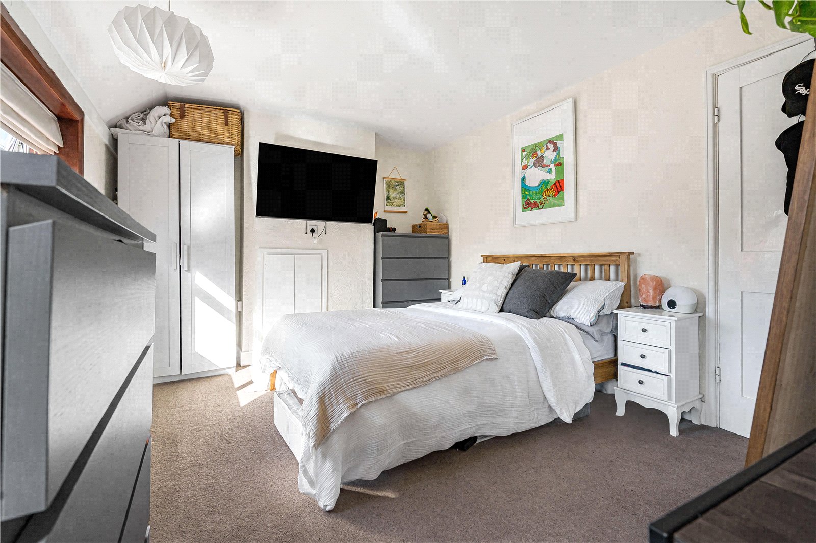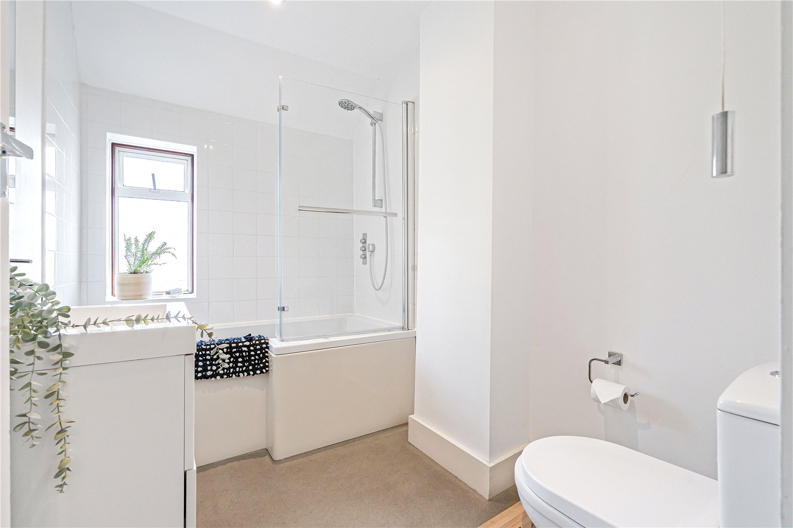 Upstairs offers two double bedrooms and a modern white family bathroom with a shower over the bath.